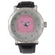 Pigmento rosa-claro com olhos de pontos pretos e pontos vermelhos salpicam um brinquedo roxo contra um fundo branco cinza.