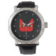 Super-relógio com pulseira preta e fundo - e o Red Cat; a imagem é ousada e colorida. Faz um presente de excelente para alguém especial ou para si mesmo