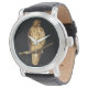 Este relógio de pulso apresenta uma fêmea Falcão Vermelho Tailandês (Buteo jamaicensis). Um dos pássaros de presa mais disseminados e comumente observados na América do Norte, esse caçador feroz está empoleirado em um galho alto em algumas árvores verdes, esperando pacientemente que apareça uma refeição. Sua cabeça é marrom e a mama branca cremosa tem manchas castanhas.