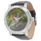 Um Robin Europeu (Erithacus rubecula) sobre uma cerca de madeira num jardim.
