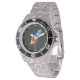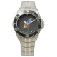 Foguete azul e vermelho com uma cinza nosecona e um proletol grande, com chamas amarelas e vermelhas sendo disparadas de três motores a jato. Diversão e um relógio único para crianças grandes e pequenas iguais!