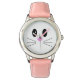 Uma linda cara de animal olha para você através deste relógio legal. Perfeito para crianças ou para os jovens de coração. Os corações dos pinos adoram o bezel e a correia é rosa também. Totalmente personalizável. Muitos estilos para escolher.