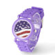Mostre seu patriotismo com seu relógio com esta ilustração de estrelas e listras em vermelho branco e azul representando a bandeira americana.