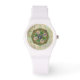 Arcos de Art Nouveau cercam as camadas de vidro manchado inspiradas nesta mandala, apresentando fogos de artifício, girassóis, sóis e tempestades em cores brilhantes para incorporar plenamente os sentimentos de atividade que vêm com o verão. Este relógio está disponível em vários tamanhos, cores e estilos, incluindo tamanhos para crianças e adultos.