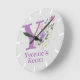 Design apresenta Monograma & Nome com Flores em ambos os lados no estilo pastel de cor de água. O nome de exemplo é Yvonne. Relógio De Quarto De Crianças. Altere o nome conforme desejado para qualquer pessoa com um nome que comece com Y.