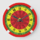 Roda com os sinais do zodíaco chinês e os anos a que dizem respeito, em cores vermelha, verde e amarela