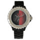 Relógio de cabelos na moda vermelho e preto com tesoura perfeita para vestir um cabeleireiro.