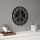 Relógio de Sinal de Paz Celta. Um padrão de nó preto e ouro sem fim na forma do clássico sinal de paz. Os nós celtas são uma forma tradicional de arte celta, normalmente caracterizada por não ter começo e fim, que simboliza o amor eterno e o ciclo infinito da vida. Eles foram considerados um símbolo favorito em muitas culturas e civilizações ao redor do mundo e com muitos praticantes de magia ou misticismo hoje. O sinal de paz é um símbolo de paz universalmente reconhecido. #paz #lepard