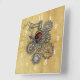 Um fantástico relógio decorativo com estilo vapor, com imagens de engrenagens mecânicas, cadeado e chave e um olho-de-luz te observando. Uma decoração moderna para a sua parede.