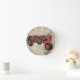 Relógio de parede redonda com imagem de um trator vintage contra papel de jornal vintage.