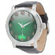 Um Relógio com um fundo de vidro brilhante em Verde.
