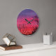 Céu colorido do sol em um relógio redondo.