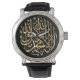 Um relógio de na moda para homens muçulmanos com a shahada impressa em caligrafia ouro.