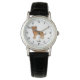 A ilustração original do desenho animado de Destei de um cão da raça Dogue De Bordeaux. Há também uma área de texto personalizável para um nome. A face do relógio é feita de números pretos.