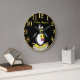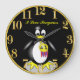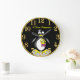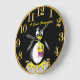 Pinguim preto e branco. Ele tem um prêmio amarelo nº 1 em seu primeiro lugar.com um fundo preto e um fundo dourado em volta do lado de fora e números de ouros com um lugar para seu texto para seu nome pessoal neste relógio.
