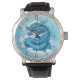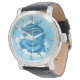 Observe um feroz dragão chinês, em tons de azul añil e branco, emergindo das nuvens