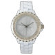 Este relógio apresenta uma fotografia de uma libélula nas margaridas, que foi digitalmente alterada para um desenho a lápis preto e branco.