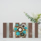 Relógio antigo e patenteado, adornado com joias, mãos de ouro e algarismos latinos com rosa de turquesa sobre fundo castanho e listrado. Estilo Steampunk.