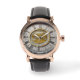 Le boîtier, en métal façon "Or Rose", évoque l'élégance des montres de poche traditionnelles.