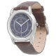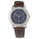 "This sophisticated watch features a striking navy blue dial adorned with classic Roman numerals, encased in a polished silver-tone frame. Its elegant brown embossed leather strap adds a touch of timeless luxury, making it a perfect accessory for both formal occasions and refined everyday wear. The subtle geometric pattern on the watch face enhances its distinguished design."