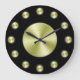 Um simples relógio de parede com fundo preto, mãos pretas e círculos de ouro para marcar as horas e uma pequena face de ouro. Clique em Personalizar para adicionar texto ou imagens personalizadas, alterar cores de fundo e muito mais.