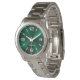Elegante Monograma Verde Bruto Metálico. Este elegante e moderno relógio é desenhado com tipografia por script de nome emparelhado com tipografia branca em preto sobre um fundo branco verde Bruche Metálico e tem espaço para você escrever seu nome. O nome do monograma pode ser facilmente personalizado para fazer um design como único, o perfeito presente de ouro para homens, é bom como presente para amigos, irmãos, pais e marido