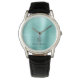 Relógio Elegante Monograma Verde Teal Brutado Metálico