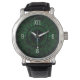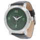 Este é personalizado projetado como um pedido, mas eu achei que ele merecia ser parte da loja. Encontrar essa sombra "direita'' e matiz de um verde alegremente enriquecido, mas saborosamente orgânico, que quase faz fronteira entre floresta e esmeralda, foi uma tarefa muito demorada, assim como aplicar os números minimalistas apropriados e a sutil estética foliar dentro dos limites da face do relógio. A fé cristã é celebrada com uma cruz 'quase brilhando' como peça central. Há uma pista da mentalidade de saber que está lá mesmo quando a visibilidade não está. Neste caso, é ocasional a falta de presença visual será obscurecida pelas mãos que desnecessariamente dizem, obscuras ou revelam dependendo do tempo.