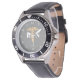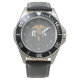 Mantenha-se a par da agenda ocupada com o estilo da Modern Nurse RN Black Cinza Monograma Mens Watch. É um design moderno com seu monograma inicial de três letras no centro inferior. Tem uma face de fundo de cinza personalizável e um símbolo falsa de caduceus dourado no centro. Faz um presente perfeito para a formatura de enfermeira masculina. Clique na opção personalizar modelo e digite monograma.