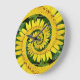 Relógio Espiral Floral Amarelo sobre fundo verde, espiral mental brilhante criada com efeito Droste da flor amarela simples