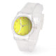 A bola de tênis de felpudo amarela é o centro deste relógio desportivo