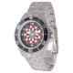 Este design em vermelho, preto e branco se parece com uma prancha. Os números brancos destacam-se no anel externo preto. Os números maiores na marca do anel de capítulo a cada trimestre de hora.