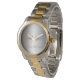 Dourada e de cor prateada, o eWatch metálico feminino com o design de "rosto": Ondas de som e "Ame o som da sua própria voz".