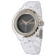A "Olhadeira Branca de Rinestone" das Mulheres apanha os olhos das pessoas. A imagem e o nome Parkour a destacam em relação ao fundo preto. O material do relógio é Bezel metal com cristal, uma face alada, e uma correia da liga Enamel. Este relógio em particular é para 13 anos e mais.