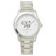 O relógio de pulseira das mulheres de tom prateado apresenta uma inicial personalizada na face branca com marcas de tempo de Cinza prateada e tem uma linha pré-formatada sob o monograma com a leitura "Famílias São para Sempre" Personalize este item e altere a amostra inicial para a sua ou comprar como está. Personalize ainda mais este relógio e escolha um estilo, cores diferentes, etc.