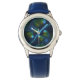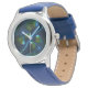 Abstrato moderno e uma única arte fractal brilhante de fantasia. Uma imagem decorativa, azul, verde e ouro. Design para seu relógio de pulso artístico incomum e muito mais.