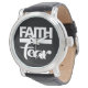 Fé sobre o medo, este design apresenta um cristão dizendo "Fé sobre o medo" em preto e branco.