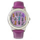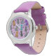 Ilustração gráfica de gatos bonitos e coloridos em um padrão. Escolha seu estilo de relógio favorito e sua cor de fundo. Ideia divertida para crianças aniversários e ocasiões especiais.