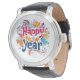 Uma celebração de Ano Novo é uma ocasião alegre cheia de esperança, renovação e energia festiva. Amigos e famílias reúnem-se, muitas vezes vestidos de roupa vibrante, para acolher com otimismo e entusiasmo o próximo ano. As decorações são brilhantes e festivas, com luzes cintilantes, balões, e faixas coloridas, estabelecendo uma cena viva. À medida que o relógio se aproxima da meia-noite, há um cheio de antecipação de contagem regressiva, levando a torcida, abraços, e o tradicional entalhe de óculos no golpe da meia-noite. Os fogos de artifício iluminam o céu, simbolizando um novo começo, enquanto as pessoas compartilham desejos sinceros de saúde, felicidade e prosperidade no próximo ano.
