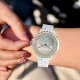Relógio Feminino de Inverno com Cristal – Esmalte Branco – Presente de Natal Personalizado.