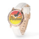 Relógio feminino vintage em ouro rosa com pulseira de couro branco