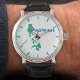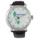 O relógio de presente filipino. Mapa estilizado das Filipinas em um relógio de pulso. Impresso em verde e azul em branco. Presente para um filipino ou alguém ligado às ilhas filipinas.