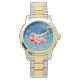 Uma vida selvagem incrível. flamingo rosa, mar, palmas e praia tropical.