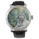 Tigre branco com olhos azuis e stripess de ouro numa selva verde azul da floresta tropical aquática A arte criada por minx267