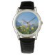 Esta incrível foto do Getty Images mostra a paisagem do campo com flores amarelas nos Alpes suíços em frente às famosas montanhas Eiger Monch Jungfrau perto de Grindelwald e Interlaken.