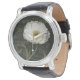 © Daphne Brissonnet / Wild Apple. Uma imagem de uma flor branca florescendo em cheio com seu caule e folhas. As palavras Jardim Botânico escrito em ouro e fundo preto rachado também podem ser vistas na imagem.