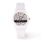 Relógio Flores Coloridas, Fundo Rosa, Preto