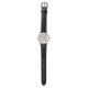 Um relógio com um belo padrão, com flores bonito cor-de-rosa, sobre um padrão listrado composto por listras azuis e creme.
