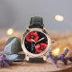 Relógio Flores Vermelhas Poppy em Preto Personalizado
