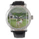Imagem feita através de uma janela dois cachorros-quentes de raposa branca e marrom estão explorando o jardim